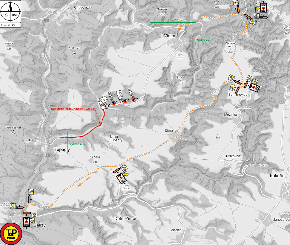 Silnice bude úplně uzavřena od cedule Tupadly směrem na Vidim. Veškeré přístupy k nemovitostem v obci budou zachovány. Objízdná trasa vede přes Šemanovice.