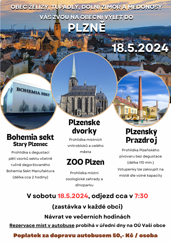 Rezervaci místa v autobuse proveďte na obecním úřadě, případně na telefonu 734737689.